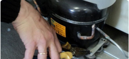- Шумит при работе. Возможно, ремонт холодильника не нужен – он просто неправильно установлен и соприкасается со стенками гарнитура. Но также могли сломаться различные элементы: компрессор, вентилятор, реле.